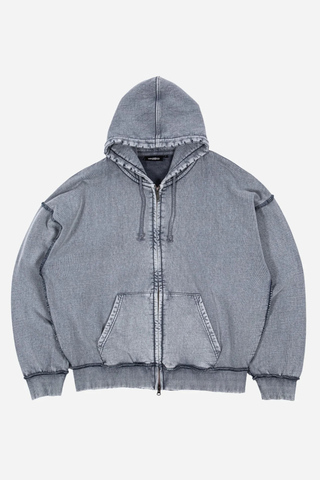 Díky efektu oprání (faded navy) působí vintage dojmem, zatímco saténová výšivka “Kingdom Curve” na zádech dodává mikině luxusní detail. Viditelné obrácené švy zvýrazňují její streetwearový charakter a originalitu.