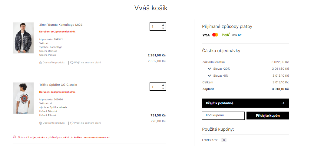 - S kódem LOVE24CZ získáte 20% slevu na nezlevněný produkt a navíc 5% na již zlevněné položky.