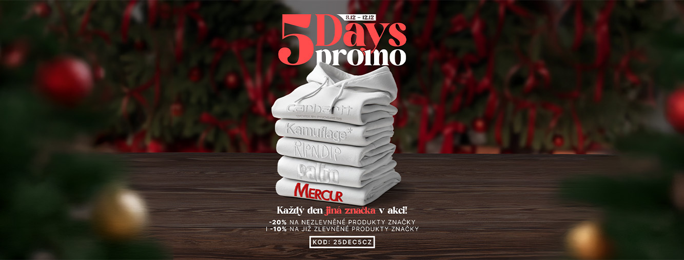 - S kódem 25DEC5CZ získáte -20 % na nezlevněné produkty a -10 % na zlevněné produkty značky Ripndip